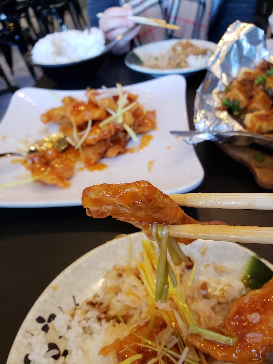 I came here with my parents for lunch and I was stuffed when we left!!!. We ordered the Hot Crisp Fish, Eggplant on Sizzling Plate, Sauteed Vermicelli with Minced Pork, and the Chengdu Spicy Chicken. My favorite was the Hot Crisp Fish. It is as described, but better. It's a little spicy in that ma-la way and I was eating it up! The eggplant was also delicious, make sure you eat it all though because it is definitely not as good as a leftover. The chicken was also pretty tasty! I will definitely be back and 10/10 recommend the food. If my parents like it, you know it's pretty legit. They are both excellent chefs and used to own their own restaurant. FYI - It is a small space and gets packed quickly!